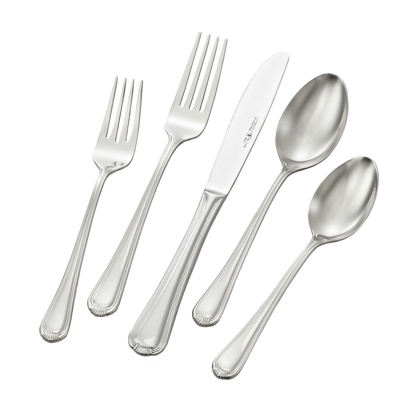 Henckels makes essential kitchen tools every home chef needs. With HI Flatware, this trusted brand brings over 120 years of cutlery expertise to the world of flatware. Each piece is fabricated from high-quality 18/10 stainless steel for optimal corrosion resistance with a luster finish.The flatware features carefully polished surfaces and edges which both look and feel good. As one would expect from a longstanding cutlery company, the knives offer superior cutting precision. Produced in compliance with Henckels’s strict quality standards, each spoon, knife, and fork offers everyday durability. Easy to care for, the dishwasher safe flatware will beautify your tabletop for many years to come.Alcea features a brilliant mirror finish. The handles are framed with a subtle border and finished at the end of each handle with a decorative accent.