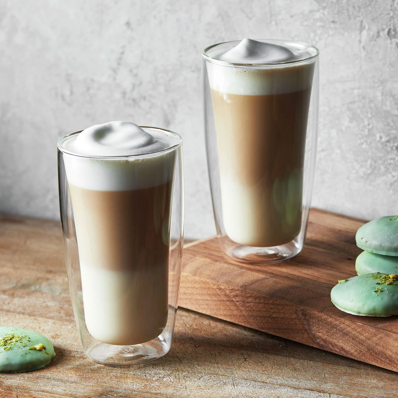 Serve silky lattes without burning your fingers in these elegant glasses designed especially for this signature coffee drink. HENCKELS Cafe Roma distinctive glassware offers an innovative, insulated double wall design and a modern look that’s a must-have for stylish kitchens.