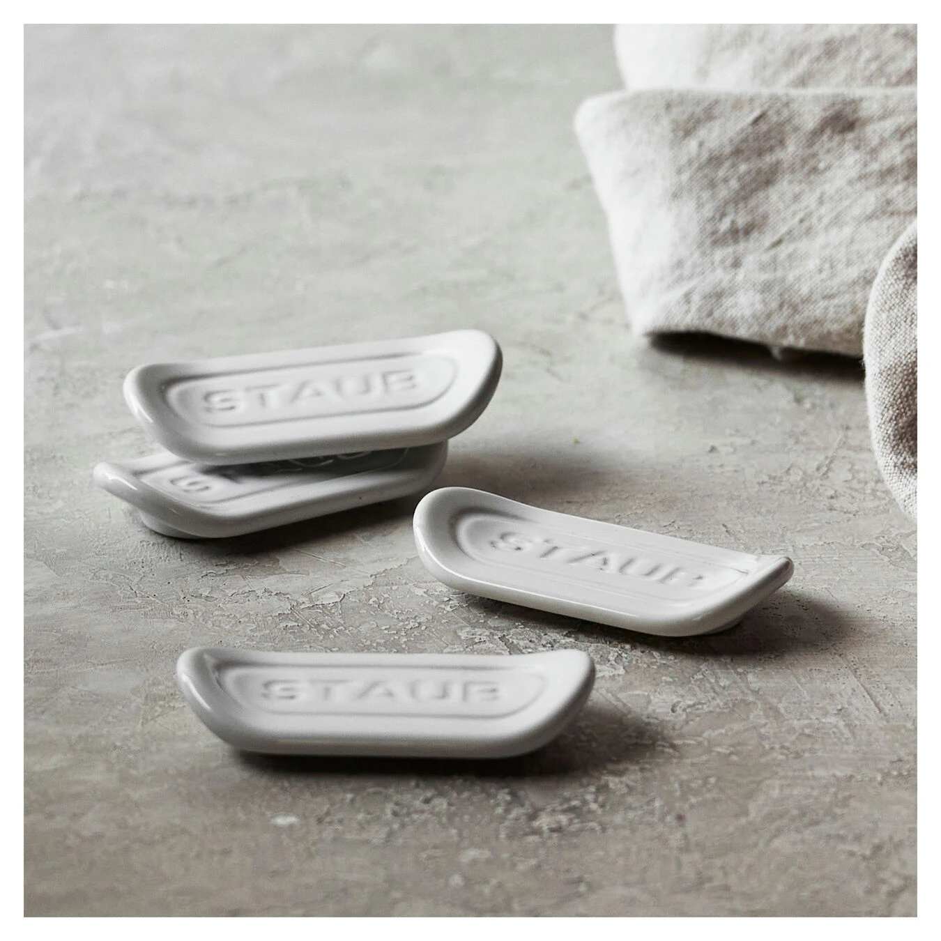 This set of 4 utensil rests, which is perfect for gifting, provides a place for a knife, fork, or a pair of chopsticks to neatly lie at the table, keeping the tablecloth clean and free of stains. This lovingly crafted, moisture-resistant stoneware is super durable, making it ideal for everyday use. The eye-catching enamel hue boasts impressive scratch resistance so you can serve and safely stack without worry.